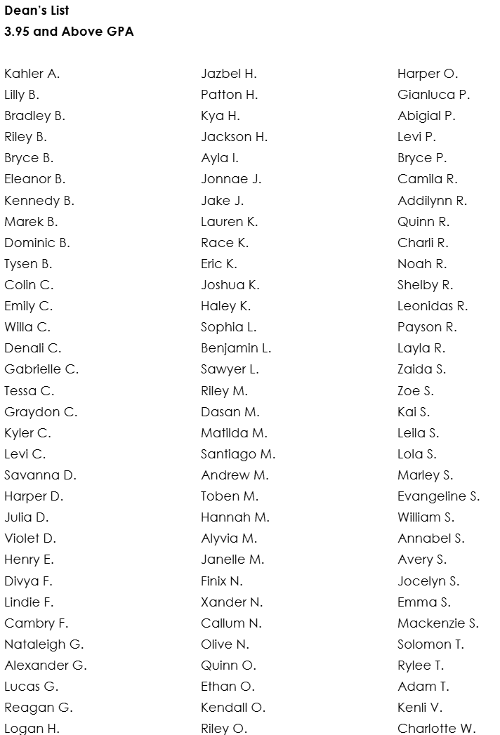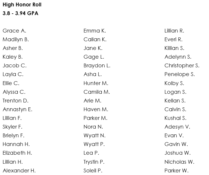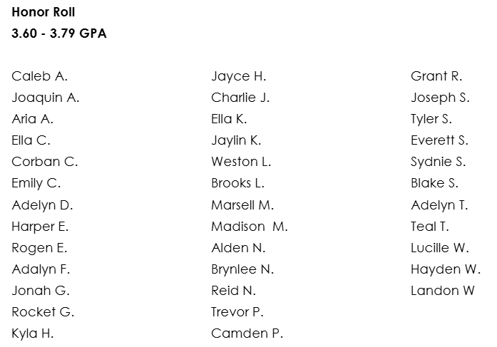 Congratulations to our 3rd Quarter Honor Roll recipients. These students will be recognized at school and receive a coupon for a Firebird Dress Day, to be used on Tuesday, April 21st. Guidelines for Firebird Dress are as follows: