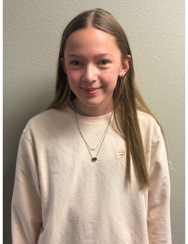 Brinnley W., an 8th grader, was recognized as a Firebird Award winner! Mr. Crompton shared, "Brinnley has grown as a math student tremendously this year. She is wise to know when she needs help, kind when she offers help to those around her, and patient with herself as well as her classmates. Brinnley always gives her best effort, and when she doesn’t meet her own standards, she is quick to correct any misunderstandings. Brinnley has maintained one of the highest grades in her math class throughout the school year and continues to impress everyone around her. Great job, Brinnley!"