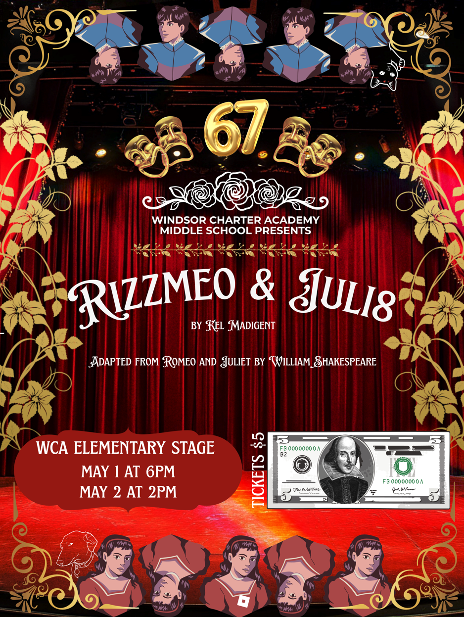 Windsor Charter Academy Middle School Theatre is proud to present its production of Rizzmeo & Juli8. This performance is an adaptation of Romeo & Juliet by William Shakespeare.